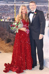 Sparkly A Line V-neck Sequins Wedding Gown Backless Prom Dress On Sale