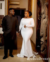 2025 White Satin Prom Dresses Long Sleeves Mermaid Wedding Dress Ruched