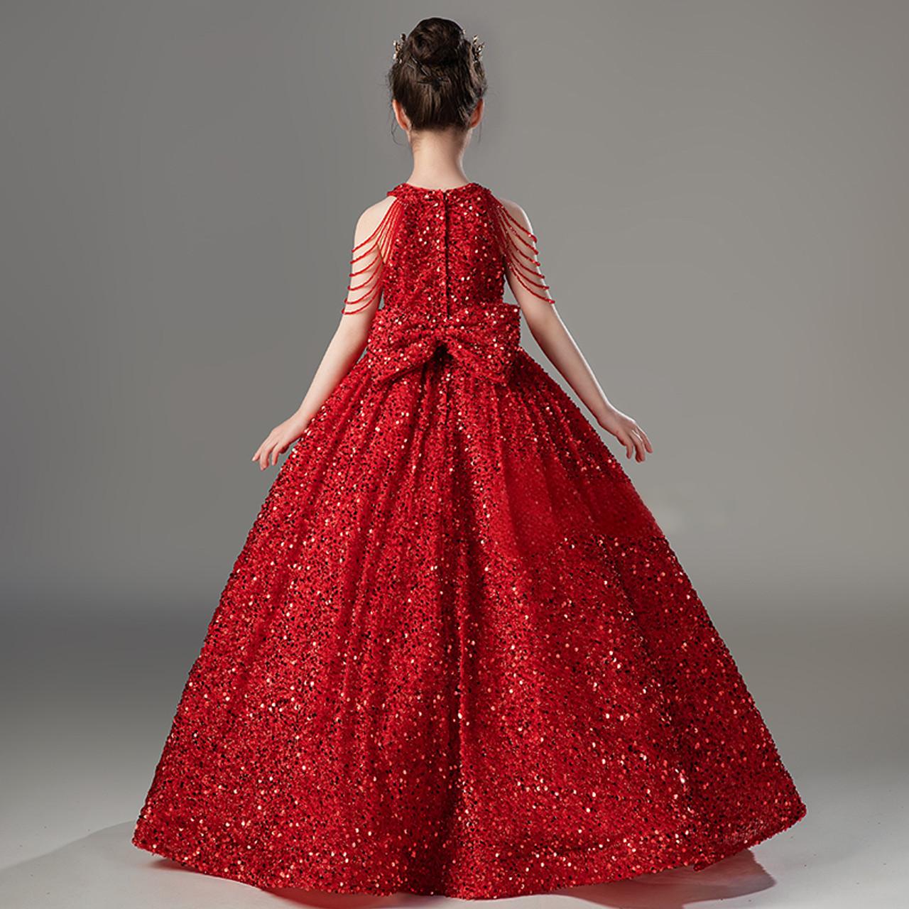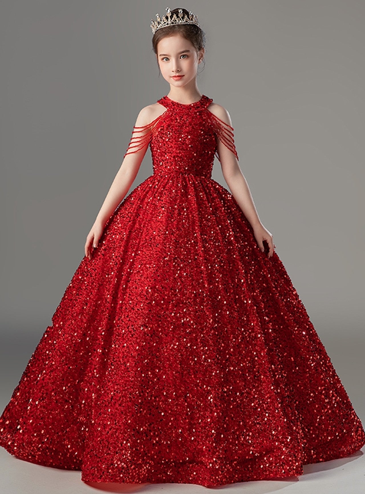 A-Line Black Sequin Flower Girl Dress Halter Beading