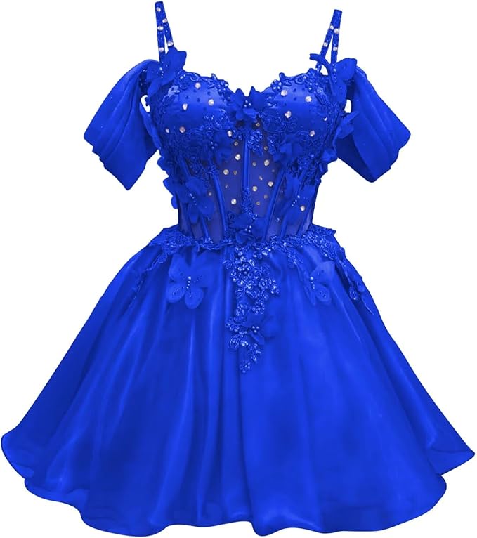 Elevate your quinceañera or homecoming look with this enchanting A-line mini dress, featuring stunning 3D butterfly embellishments that capture light and movement. The flattering silhouette skims the body gracefully while the delicate butterfly details add whimsical sophistication. Perfect for damas or anyone seeking a show-stopping short gown that balances playful elegance with premium craftsmanship. An unforgettable choice for your special celebration.