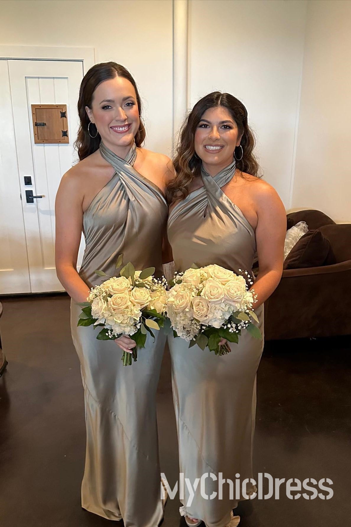 Experience elegant luxury in our Sheath Halter Champagne Wedding Party Dress Long! This stunning dress features a sleek sheath silhouette and a flattering halter neckline, perfect for any special occasion. The delicate champagne color adds a touch of glamour, making you the center of attention. Make a statement and turn heads with this exquisite dress!
